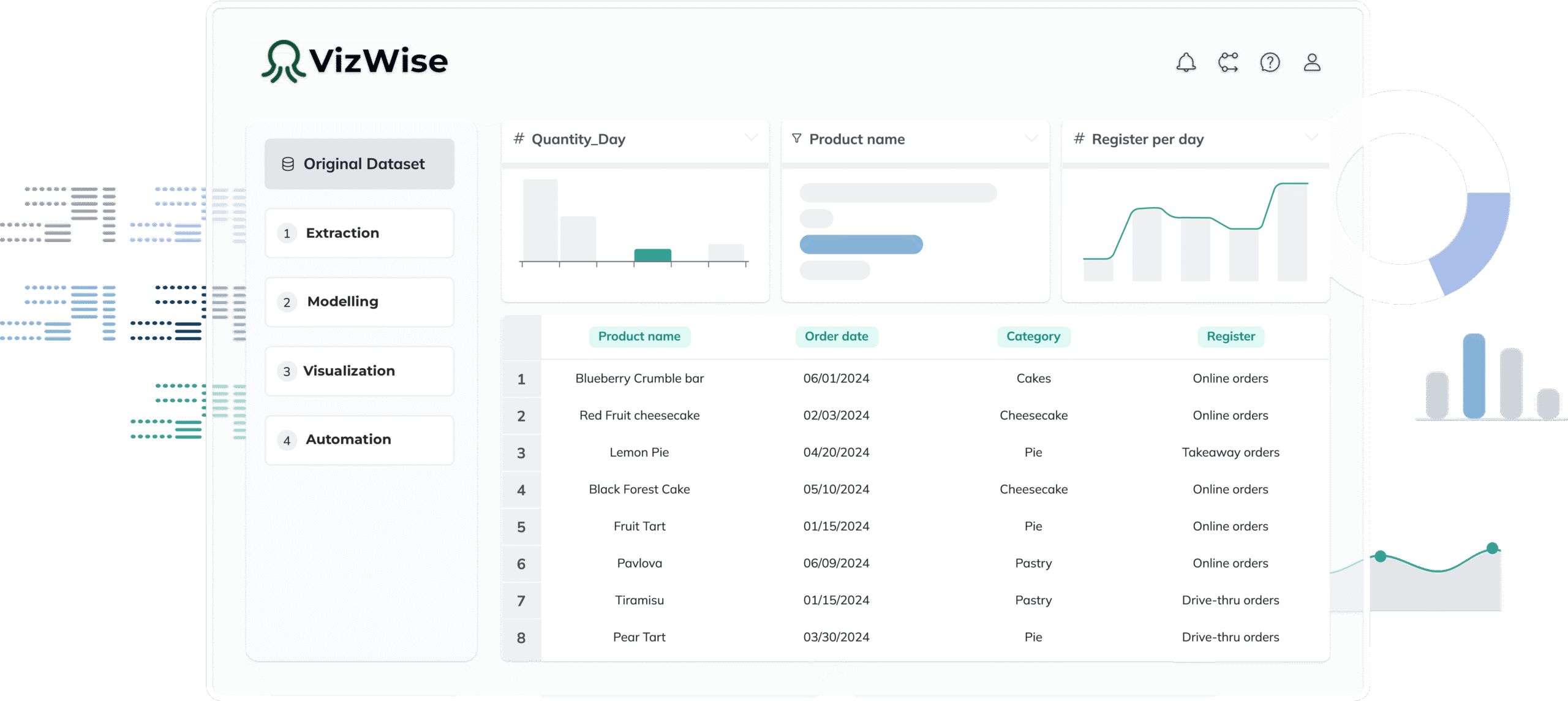 Your Behind-the-Scenes Analytics Team That Feels Like Your Own Get access to AI-empowered data engineers, analysts & project managers without the hassle of managing full-time employees. Connect with us Onboard vetted experts in 24hrs Scale up & down anytime Trusted by data-driven teams worldwide See case studies Automated data transformations made easy Connect with us Data Preparation Let us pull, clean & combine data from any source Fix formatting issues, join multiple datasets, and standardize fields. So your analysis starts with clean, reliable inputs. VizWise for data preparation Point-and-click data cleaning Fix missing values and messy formats Save reusable prep steps as templates Join and merge from files or systems Workflow Automation Automate data pipelines that scale with your business Let us automate your end-to-end workflows that run on a schedule or in response to events. No more monitoring and fixing your data every week. VizWise for workflow automation Visual scheduler for repeatable processes Automated exports to X, Y and Z Schedule workflows or trigger via API/webhook Monitor runs and catch failures automatically AI-Powered Assistance Use AI to accelerate your data workflows VizWise uses AI where it’s useful: exploring your data, summarizing outputs, and extracting new data from complex sources. VizWise's Al data tools Smart suggestions for prep and transformation complex deployments on un/structured data Summaries of trends and changes Data extraction from JPG, PDF, and more Built for teams Get your whole team working with data without any bottlenecks VizWise was built to empower ops, marketing, or finance to build and run workflows without relying on engineers. VizWise for data automation No-code interface with access control Workflows are reusable, and shareable Built to scale across teams and projects Easily exports across other data tools Security teams love VizWise Learn more about security Teams use VizWise to make data-driven decisions. Fast. Automate your data management with instant insights, AI-powered workflows, and faster decisions. Connect with us 1,400% ROI increase time/action 53% decrease in monthly maintenance costs 1,000% ROI increase time/action 94% decrease in maintenance costs 50+ hours saved per month How Uptime Fulfillment uses VizWise to save 50+ hours of manual work per month Read how Uptime First automated their Inventory Measurement by switching from Excel to VizWise. Read story Integrate with your entire stack VizWise helps you integrates with databases, CRMs, e-commerce platforms, finance tools, and more. Explore integrations Real results powered by VizWise Companies of all sizes across the globe use VizWise automate their data workflows. Explore customer stories Canada's largest safety gloves brand automates lead generation with data-driven automation Read story Empowering Foodforward with VizWise's Data Automation Read story Discovery Point empowers